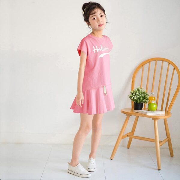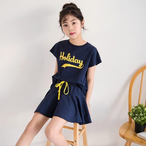 PRODUCT DESCRIPTION: TOP- ROUND NECKLINE; BOTTOM- DRAWSTRING, RUFFLE HEM ATTACHED WITH SHORTS